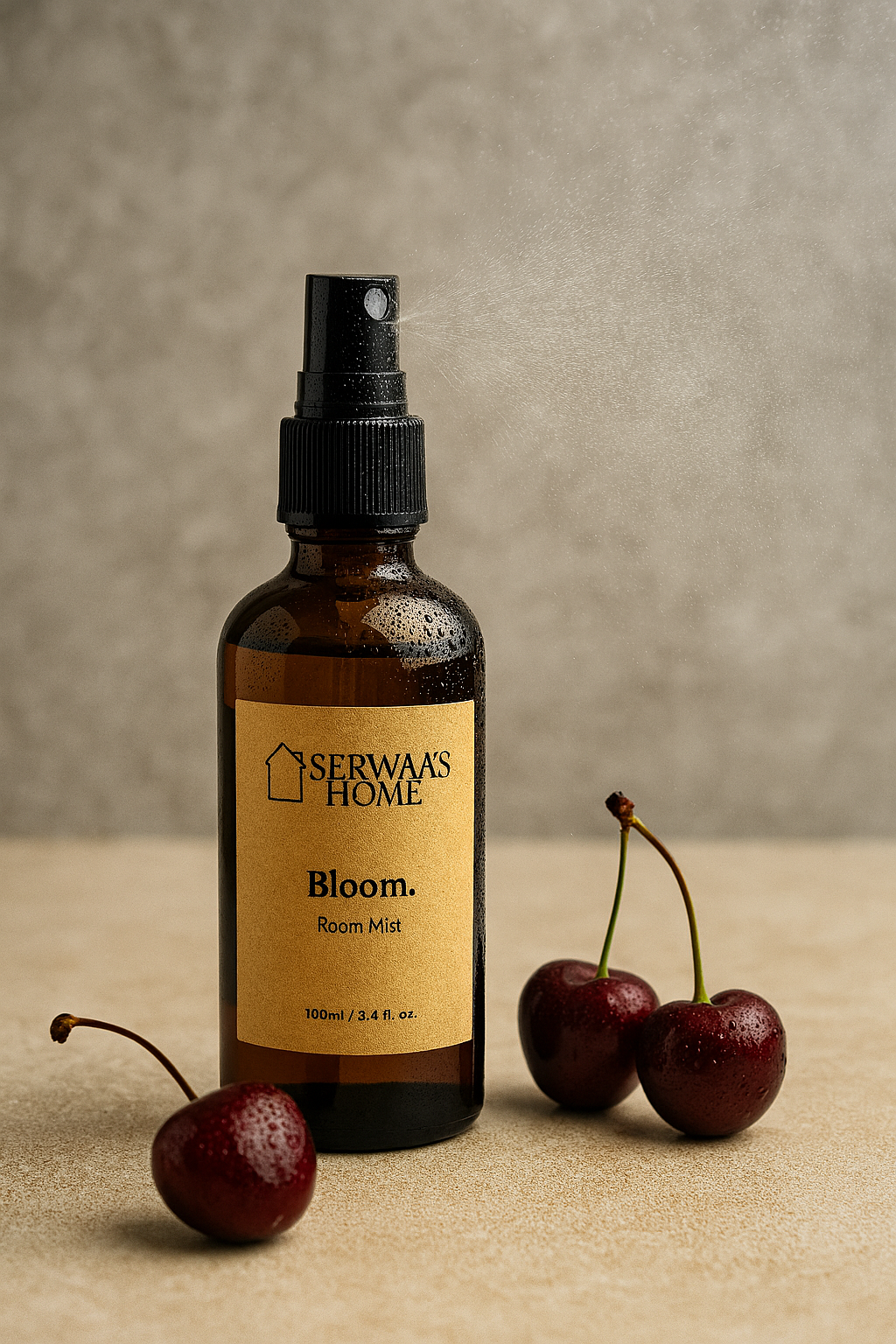 Indulge your senses with Bloom, a captivating room mist bursting with the rich, juicy aroma of ripe black cherries. This luscious fragrance blends fruity depth with a hint of sweetness, creating a warm, inviting atmosphere that feels both luxurious and comforting.